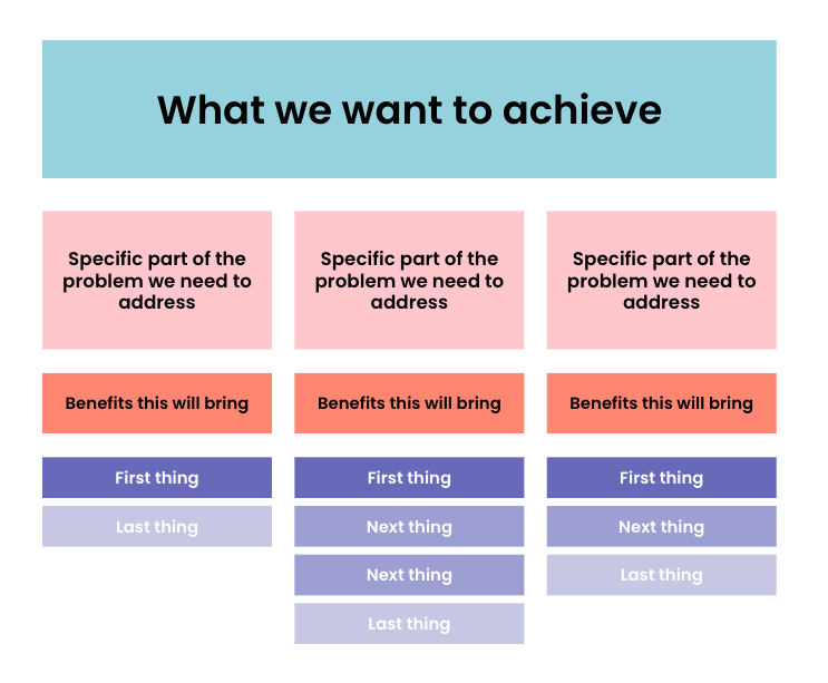 It can be remarkably difficult to stay aware of what each team is focused on delivering. This risks duplicated effort solving the same problem over and over. It also increases the chances that the service experience will feel fragmented to users, as different teams deliver different parts of the whole. In an earlier post on working in the Ministry of Justice, I share an example of how zooming out, and focusing on purpose helped us prioritise areas of value, and identify opportunities for join up and reuse.